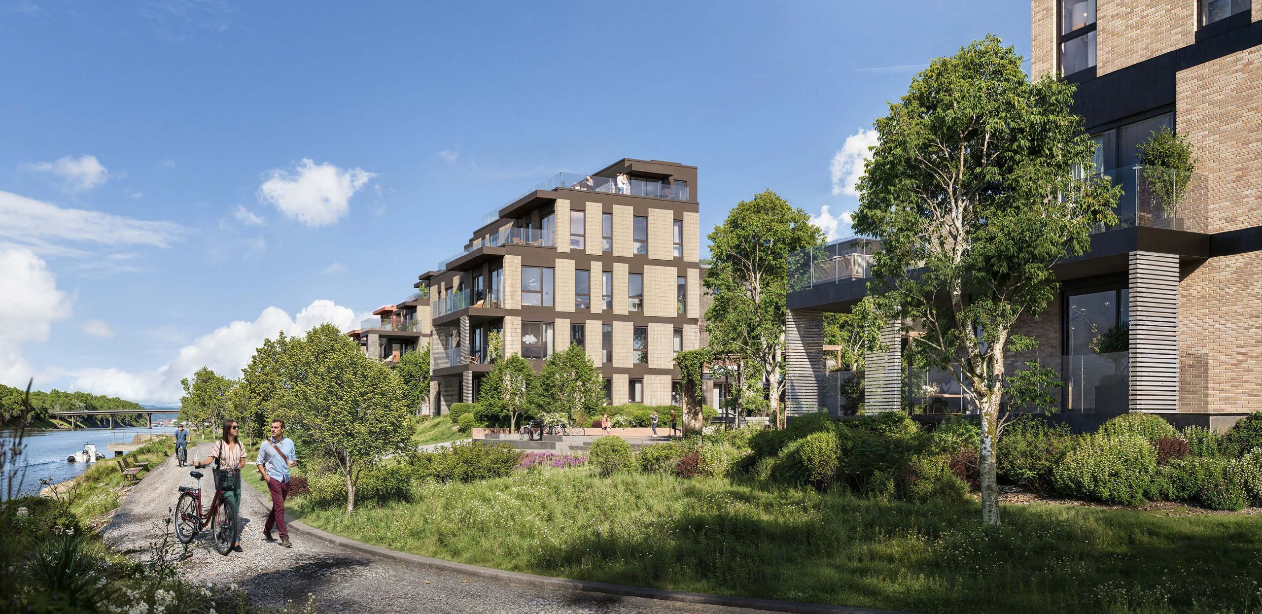 Boligene får rikt med naturlig lys, unike solforhold og utsikt mot elven
